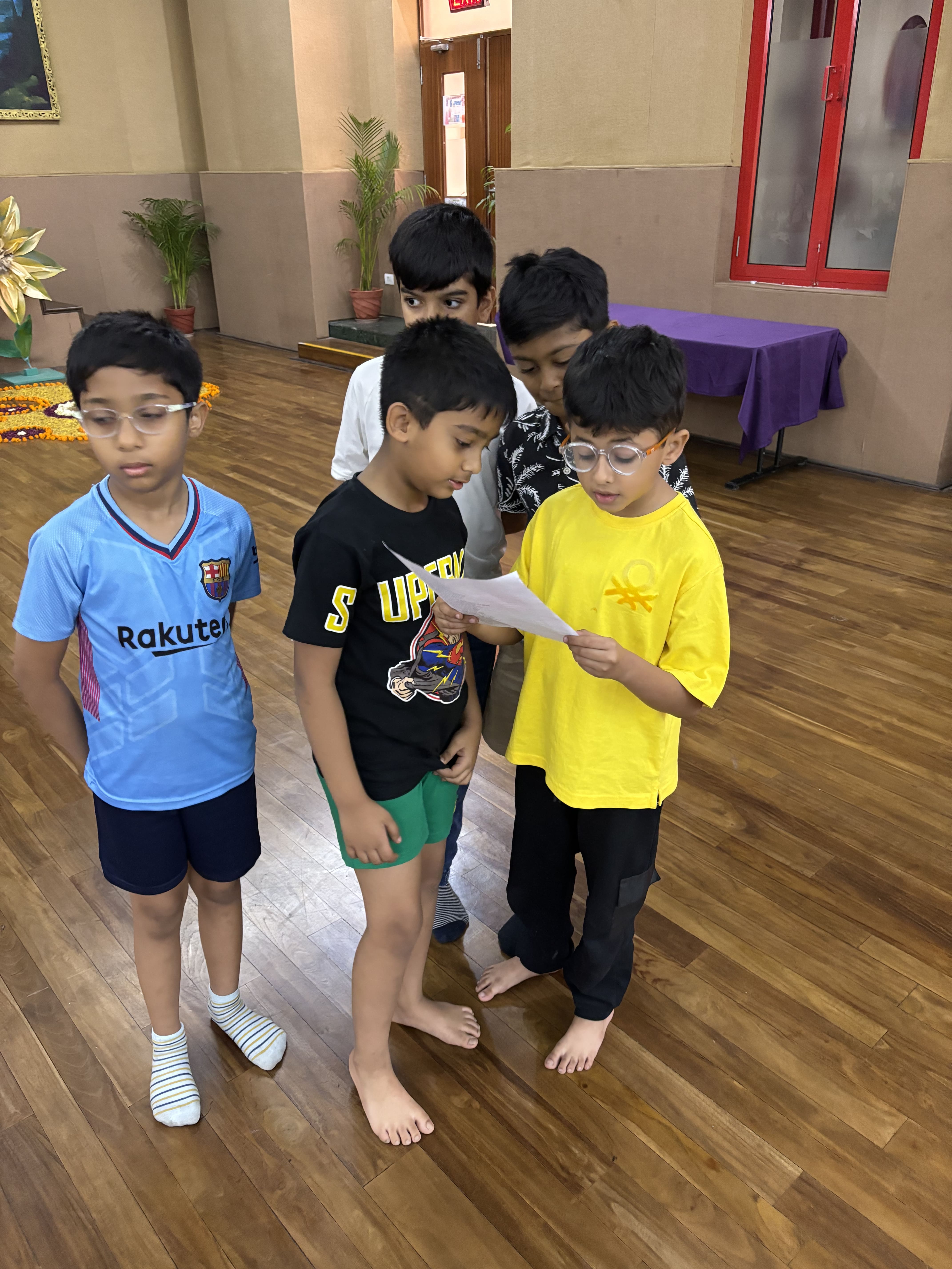 The aspiring thespians of Group 1 delved into the enchanting world of theatre, focusing on the practical exploration of enacting a poem. Under the guidance of their mentor, they discovered the nuances of using memory power to learn their lines. The room buzzed with creative energy as they rehearsed, weaving the verses of the poem into a tapestry of emotion and expression. This exercise not only honed their memorization skills but also deepened their appreciation for the art of performance. Simultaneously, another set of Group 2 students immersed themselves in the world of theatre with a different focus. They completed their scripts and engaged in lively discussions about the roles they wished to explore through street plays and skits.